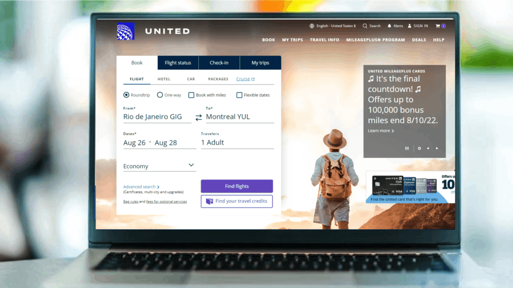 - Passengers can redeem their reward points or miles to book a ticket with United Airlines, hotel booking, or car rentals.